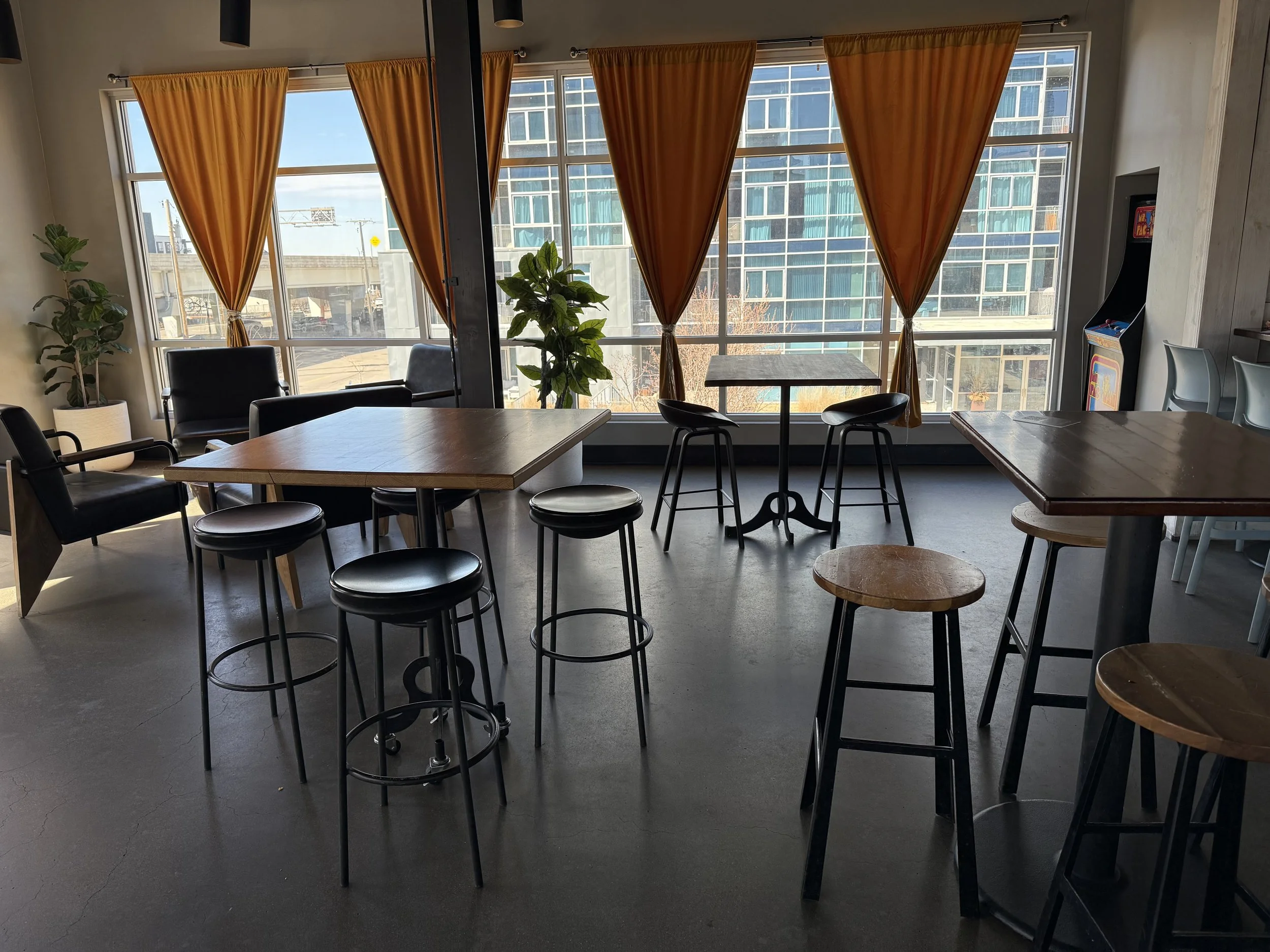 Located on our second floor, this unique space features several high-top tables and is ideal for cocktail-style events. Whether you're hosting a small work party or gathering with friends to watch the big game,, this spot is perfect for entertaining.