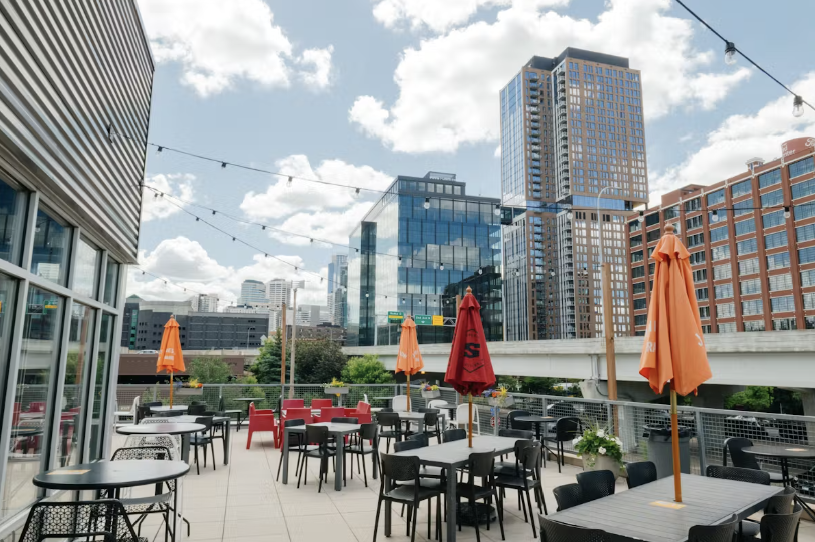 Featuring a beautiful fire pit, easy bar access, cozy seating, and incredible Minneapolis skyline views, this is one of our most inviting semi-private event spaces.