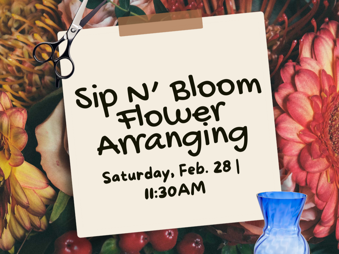 Hands-on flower arranging class lead by Sip N’ Bloom. Make your own seasonal bouquet to take home and learn a new skill! -
