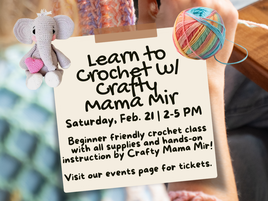 Beginner friendly crochet class with all supplies and hands-on instruction by Crafty Mama Mir! -